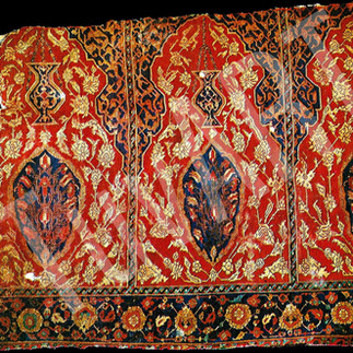 The most strking innovation of the 16th century is the introduction of naturalist floral and geometric borders, replacing the Kufic designs, alongside this, the mihrab itself becames softer and more voluted, while in 17th century Gördes and Kula seccades a more architectural form replaces this. However, in 16th century seccades we do find realistic representations of votif lamps decorated with "rumis", while medallions of blossoming branches, filled with tulips and carnations, cover the field. In those 16th century carpets found in the Selimiye mosque in Edirne, they echoe the tiled panel decorations of the mosque. On other saphs from this mosque, chintemani motifs, much seen on the caftans of the sultans, are also to be seen.